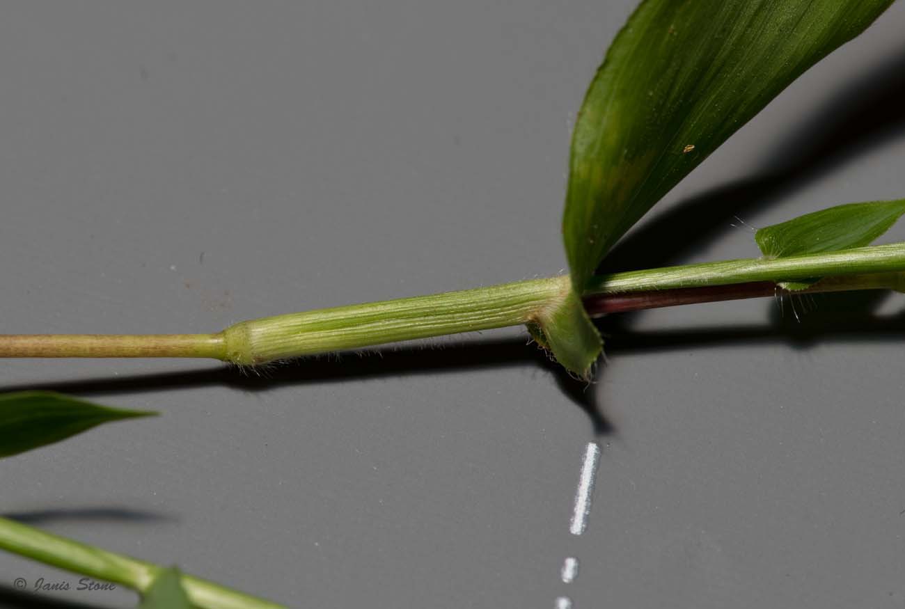 Small Carpetgrass is sometimes confused (especially before flowering) with Japanese Stiltgrass (Microstegium vimineum) and Wavyleaf Basketgrass (Oplismenus undulatifolius). Small Carpetgrass has distinctly cordate-clasping leaves, which Japanese Stiltgrass lacks. Also, while the leaves of Wavyleaf Basketgrasss may superficially appear to be cordate-clasping, they are not, plus they are more undulate.