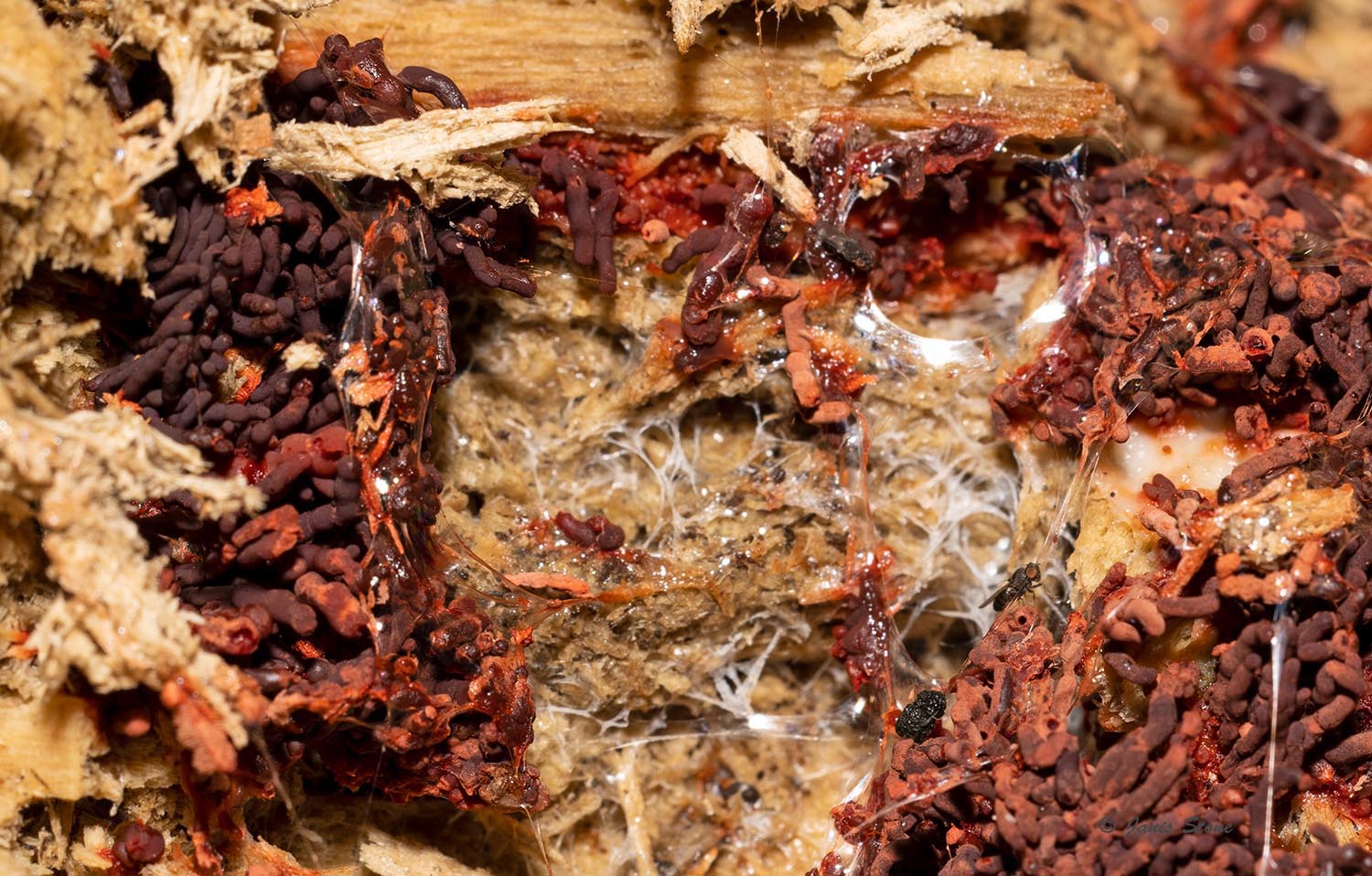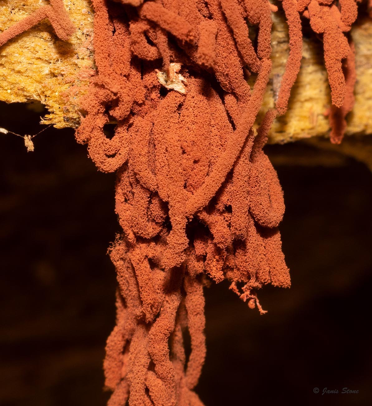 Carnival Candy Slime Mold gets its common name from the resemblance of its fine spore bearing structures
