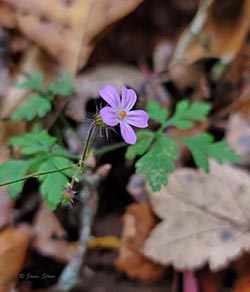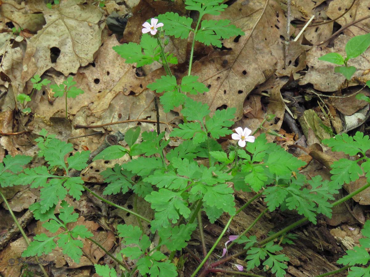 Herb Robert leaves are compound, and its flowers can range from white to pink to red-purple. While it is considered rare, it can be locally abundant at some sites.