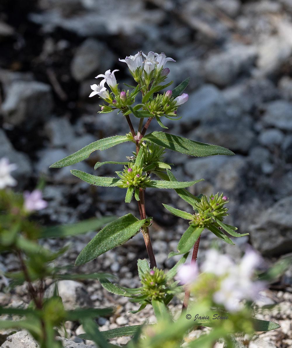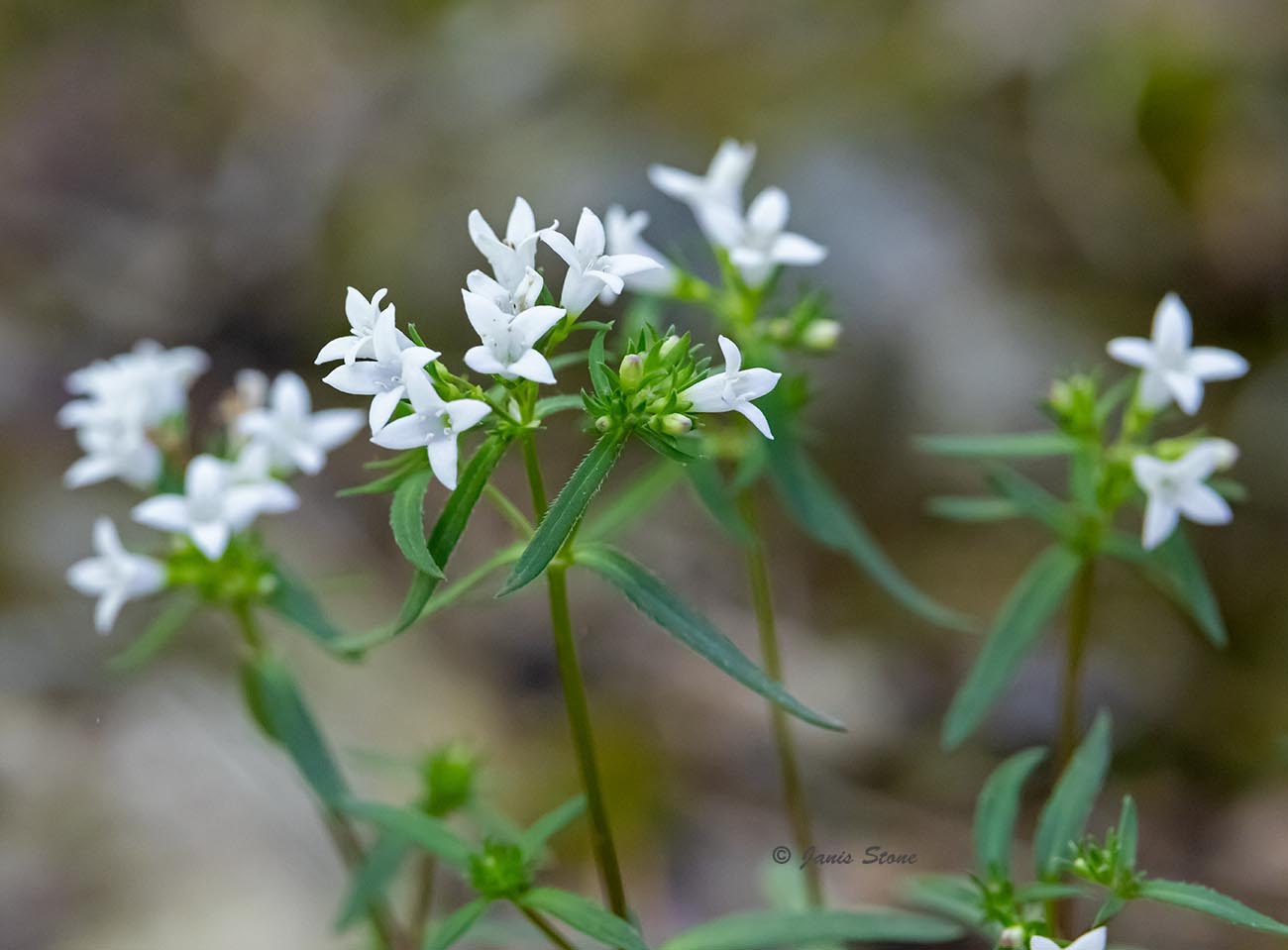 Canada Bluets typically are found in limestone woodlands, barrens, and outcrops, usually at higher elevations or in the more northern part of the mid-Atlantic region. It flowers in terminal cymes, with each flower funnel-shaped.