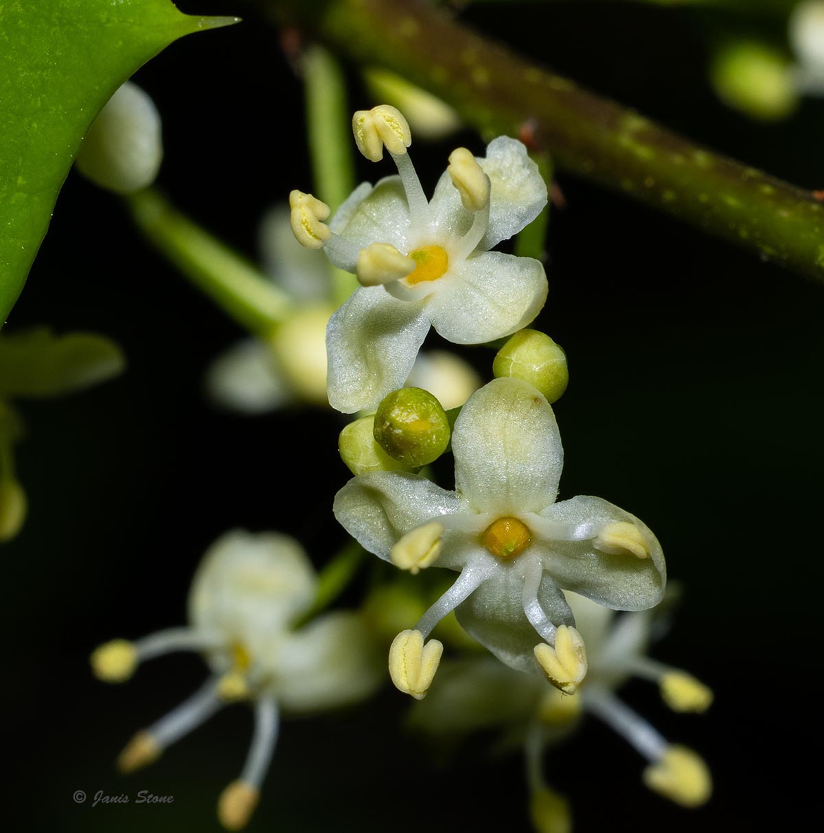 American Holly male flowers typically have 4 stamens; its female flowers often have infertile vestigial stamens.