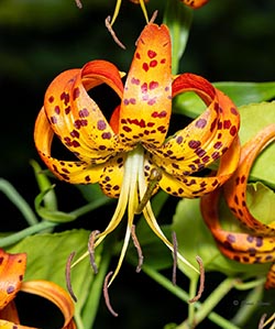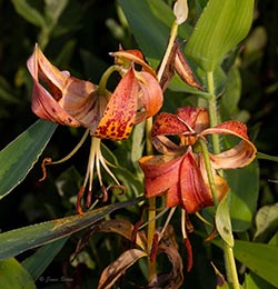 Turk's-cap Lily's flowers are nodding and range in color from yellow to reddish.