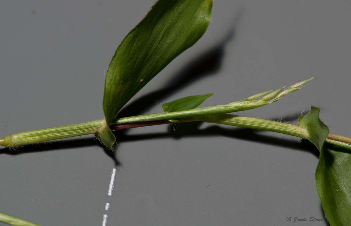 Small Carpetgrass is sometimes confused (especially before flowering) with Japanese Stiltgrass (Microstegium vimineum) and Wavyleaf Basketgrass (Oplismenus undulatifolius). Small Carpetgrass has distinctly cordate-clasping leaves, which Japanese Stiltgrass lacks. Also, while the leaves of Wavyleaf Basketgrasss may superficially appear to be cordate-clasping, they are not, plus they are more undulate.