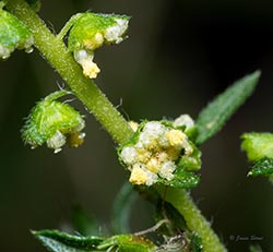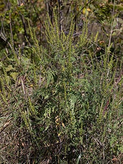 Common Ragweed is native to North America, but has become invasive in other parts of the world. Its wind-blown pollen is highly allergenic, especially in people susceptible to hay fever. It has compound leaflets, which helps distinguish it from other ragweeds in our area. Common Ragweed's seeds persist into winter and are a good source of food for birds.