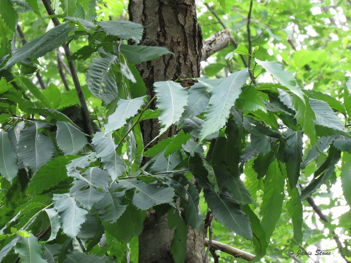 Note the straight, tall trunk, as compared to shorter, spreading trunks of other chestnut species.