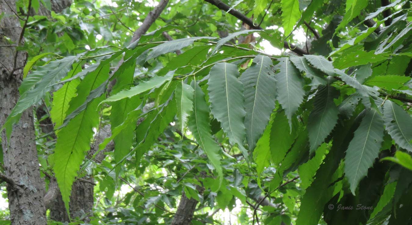 Once abundant and widespread, a source for food and building wood, these trees were decimated by the Chestnut Blight fungus (Cryphonectria parasitica). While the fungus doesn't kill the root system but only affects the tree above ground, today it is rare to see specimens of any significant height.