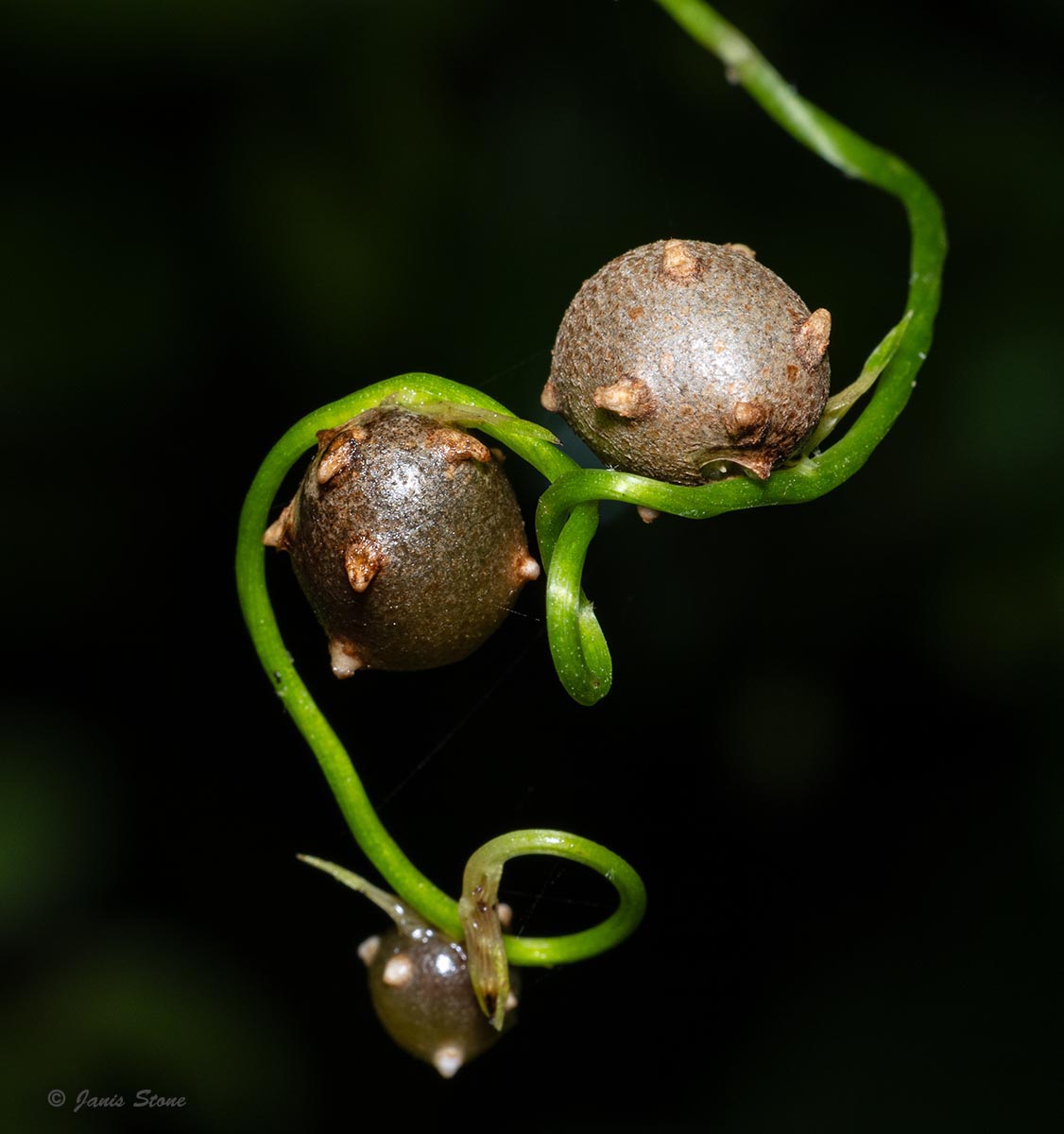 Chinese Yam is a twining vine that is native to East Asia. Its has alternate or 3-whorled leaves that are halberd-shaped, unlike the cordate-to-ovate shape of Wild Yam (Dioscorea villosa)'s leaves. It also forms small potato-like aerial tubers on its stems, which Wild Yam never does.