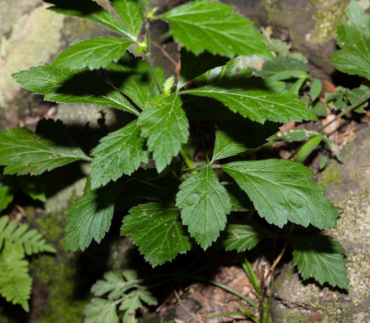 White Avens typically has alternate 3-leaflet compound leaves. Its flower's petals are widely separated, and you can usually see a pointed sepal in between each set of petals.