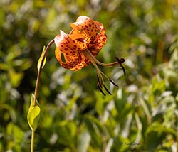 Turk's-cap Lily's flowers are nodding and range in color from yellow to reddish.