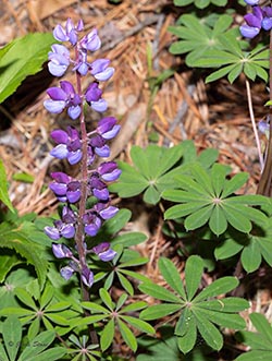 Sundial Lupine is often referred to as the northern subspecies (var. perennis) of Lupinus perennis. It gets its common name "sundial" from its palmate leaves.