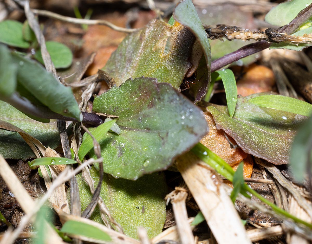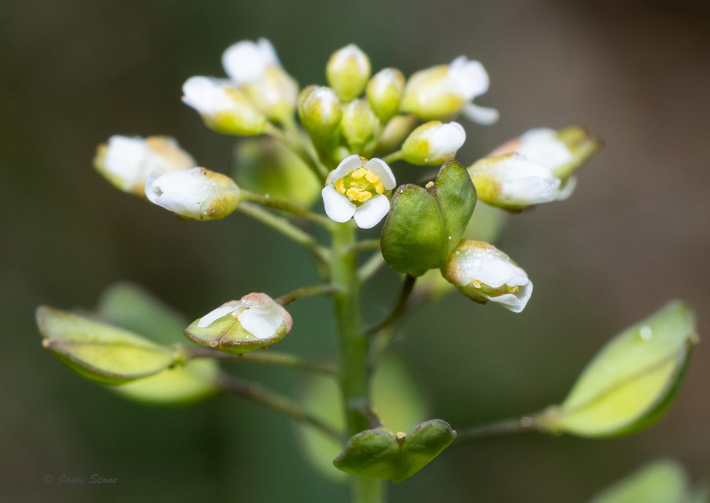 Perfoliate Penny-cress is an annual plant, native to Eurasia and North Africa. It bears small white flowers at the top of a single stem. Its basal leaves are ovate, with dentations. Its stem leaves are lanceolate and jagged, with their bases wrapped around the stem (i.e., perfoliate).