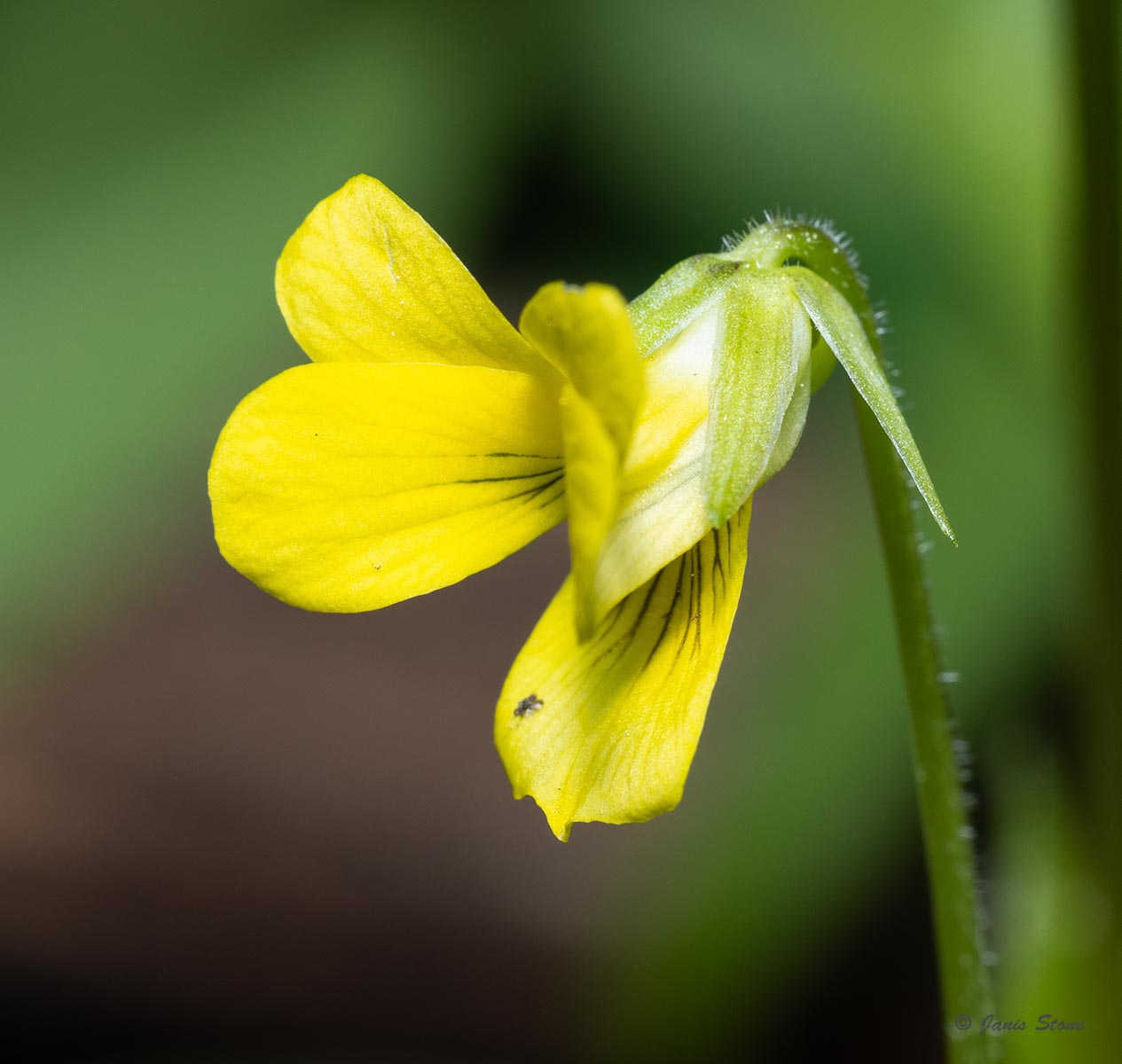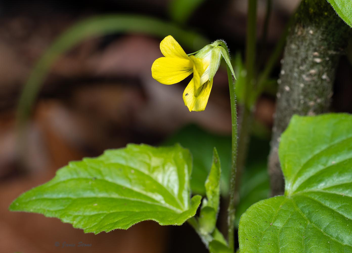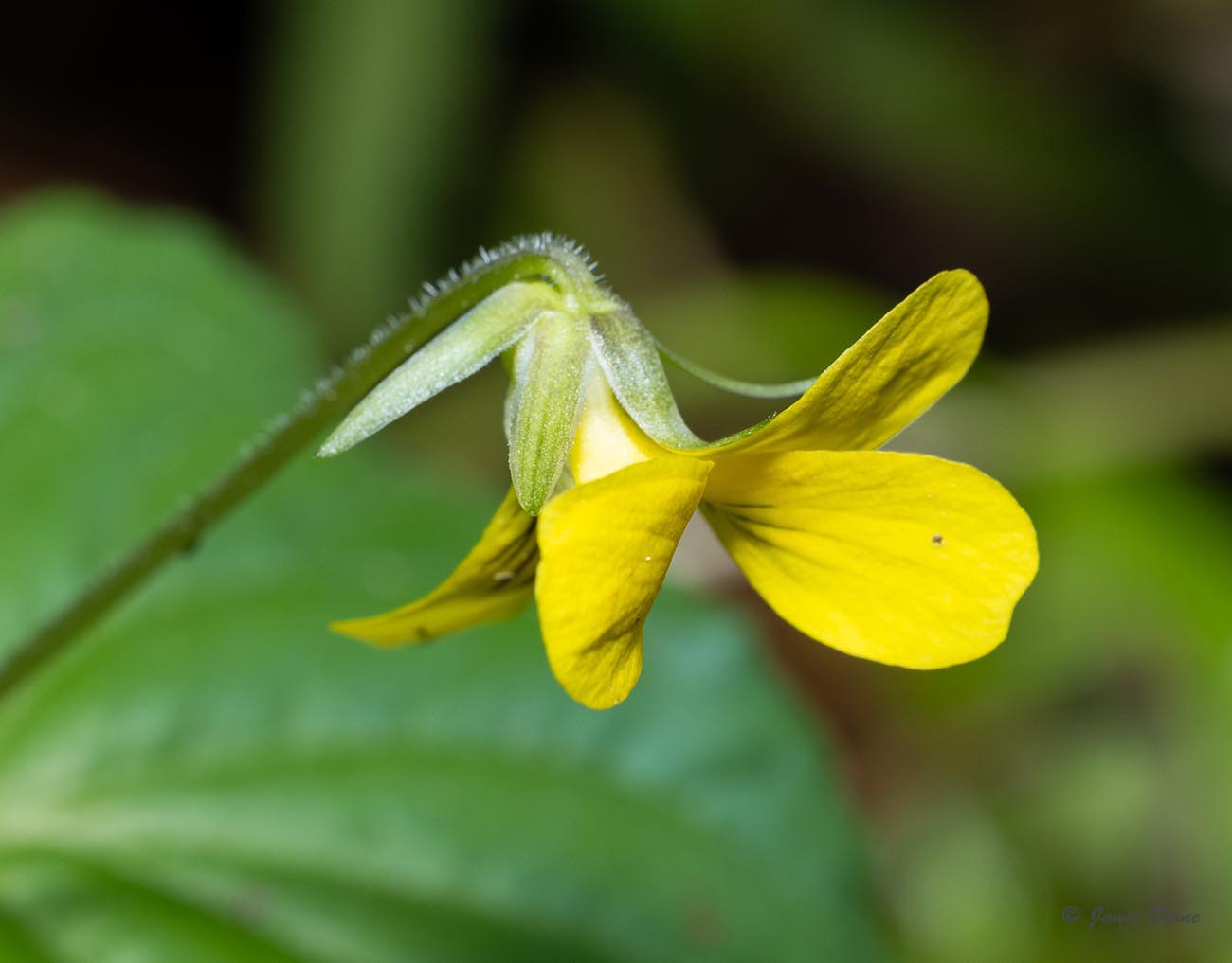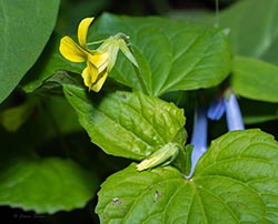 Regardless of what you name it scientifically, Smooth Yellow Violet has broad ovate leaves. It bears both chasmogamous (open) and cleistogamous (closed self-pollinating) flowers, like many other violets. The open flowers are bright yellow with purple or brown-purple veins near the petal bases. Smooth Yellow Violet is quite similar to Downy Yellow Violet (V. pubescens), but Smooth Yellow Violet's leaves are smooth (glabrous) as opposed to the Downy's densely pubescent leaves. It usually has 2 or more stems, which are slightly pubescent. Look for Smooth Yellow Violet's fairly distinctive 56mm sepals.